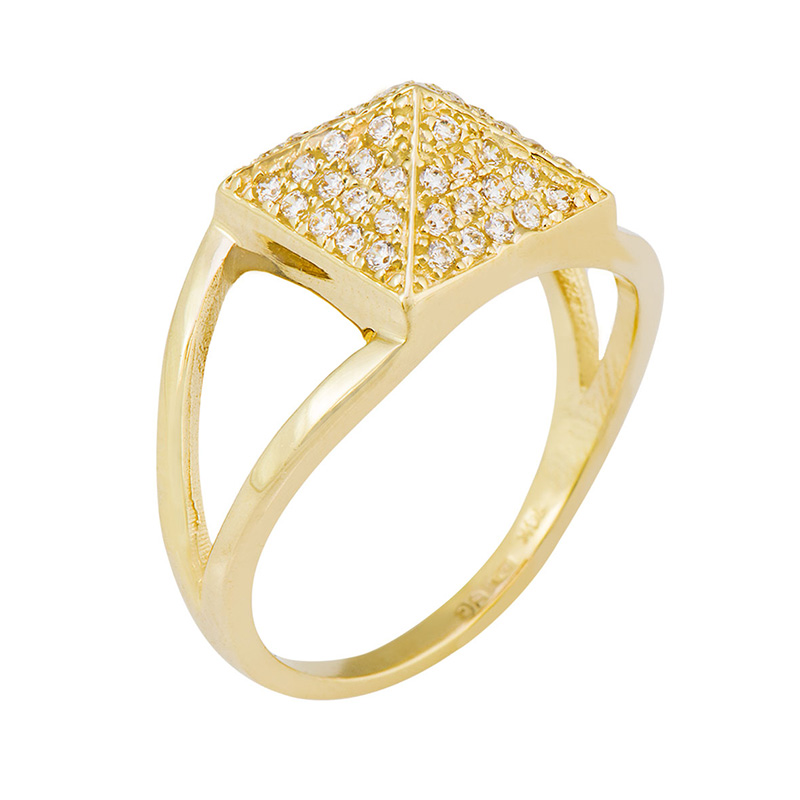 טבעת זהב צהוב 14K משובצת בזירקונים לבנים בצורת פירמידה.
