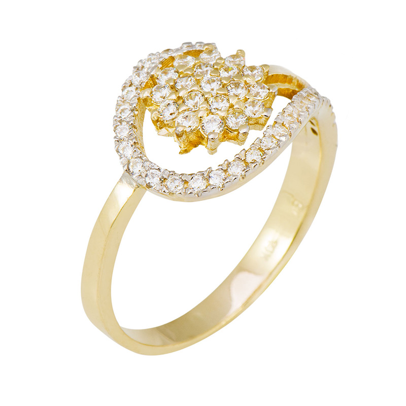 טבעת זהב צהוב 14K משובצת זירקונים.