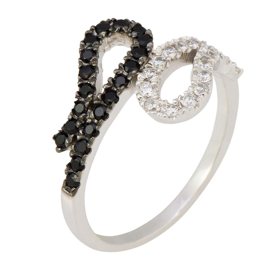 טבעת זהב לבן 14K משובצת בשילוב זירקונים לבנים ושחורים.