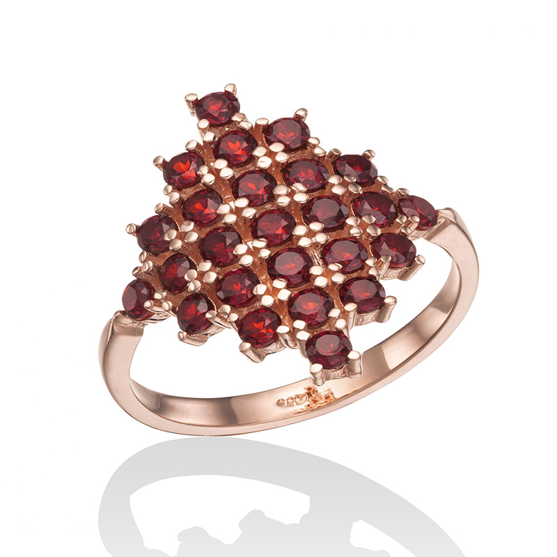 טבעת זהב 14K בצורת מעויין משובצת אבני גראנט אדומות, אבני זירקון לבנות או אבני זירקון שחורות לבחירת הלקוח.