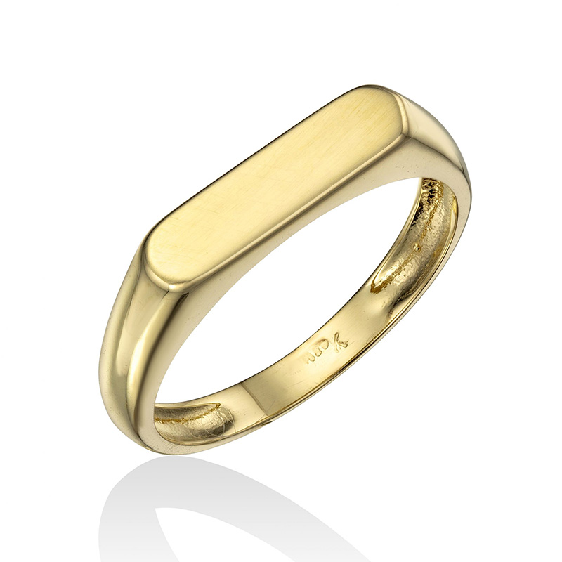 טבעת חותם עשויה זהב 14K בעיצוב אלגנטי.