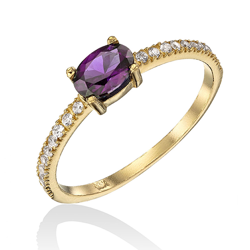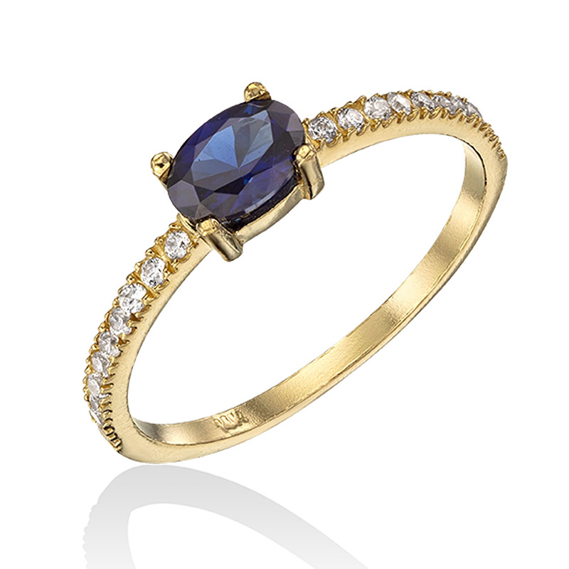טבעת זהב 14K משובצת אבן אובלית בצבע לבחירת לקוח בשיבוץ שיניים משובצת אבני זירקון לבנות סביב.
