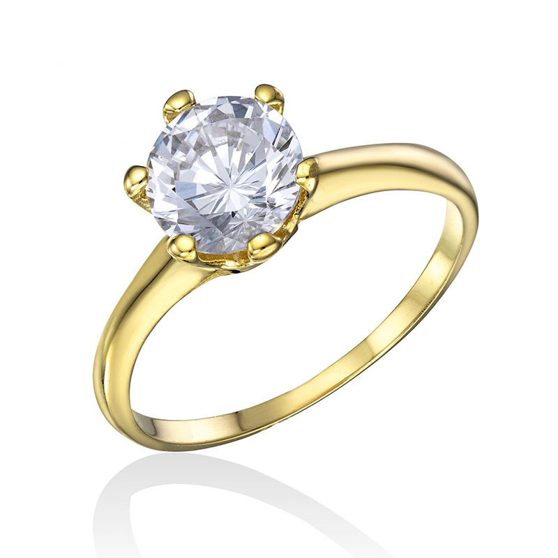 טבעת זהב 14K סוליטר משובצת אבן זירקון בשיבוץ שיניים.