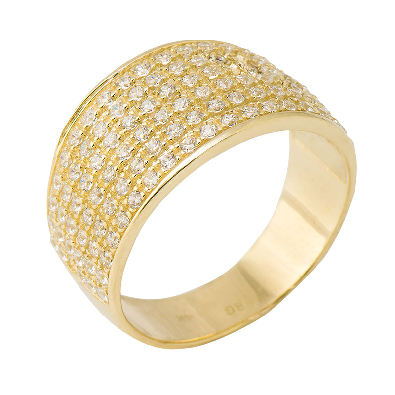 טבעת זהב צהוב 14K קמורה משובצת אבני זירקון לבנות.