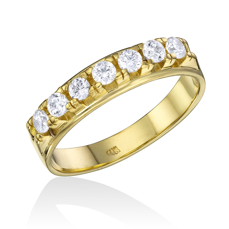 טבעת זהב 14K משובצת שבע אבני זירקון לבנות בשורה.