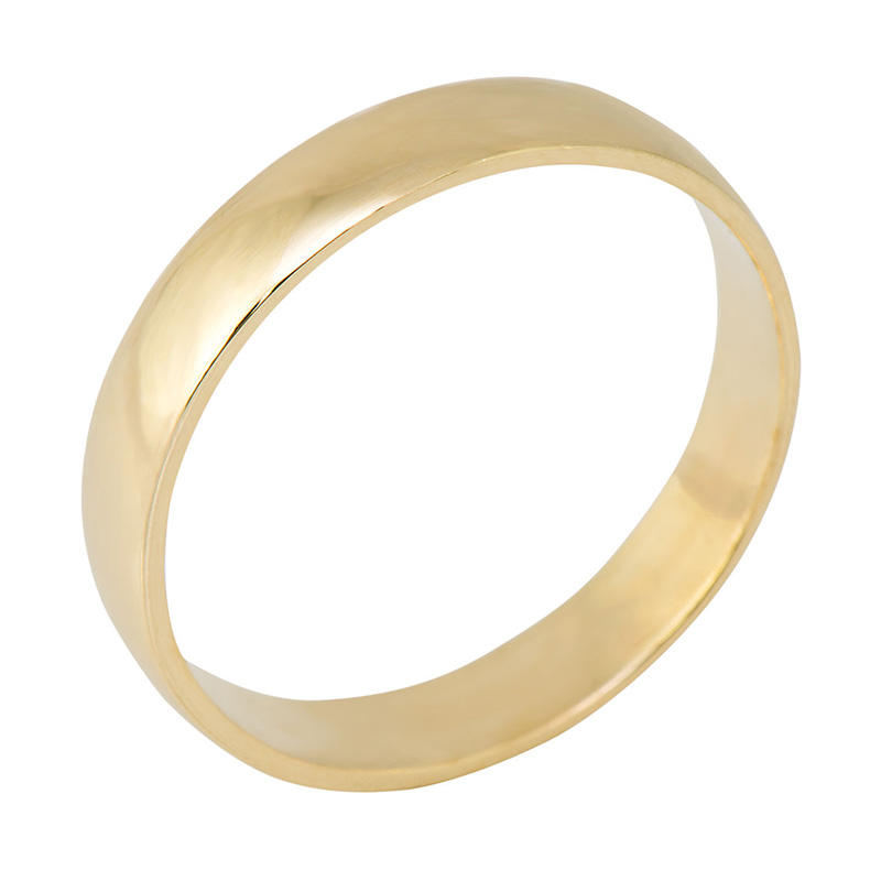 טבעת נישואין יוניסקס מסורתית, פשוטה וחלקה עשויה זהב 14K.