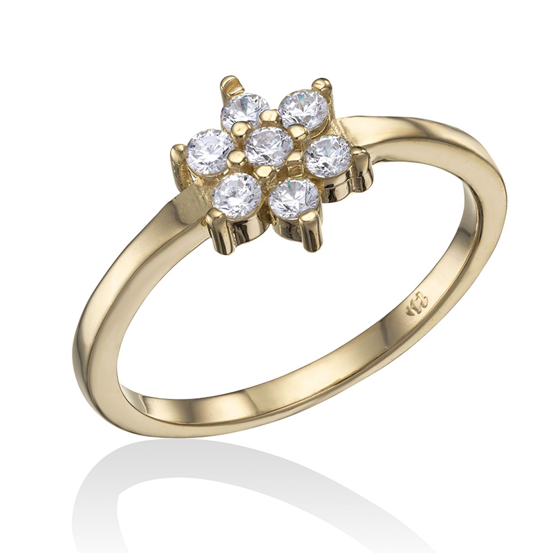 טבעת זהב 14K משובצת שבע אבני זירקון לבנות.