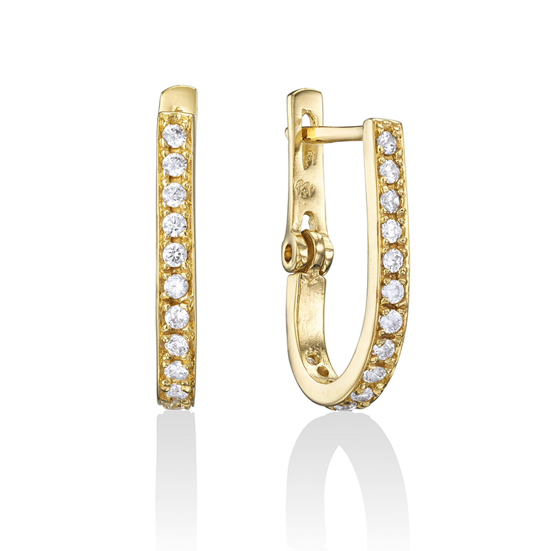 זוג עגילי זהב 14K בננה בשיבוץ שורת אבני זירקון לבנות.