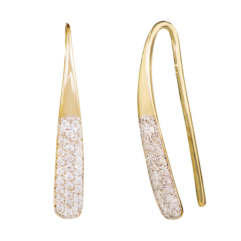 זוג עגילי סיכה אלגנטי עשוי זהב צהוב 14K משובץ זירקונים לבנים.