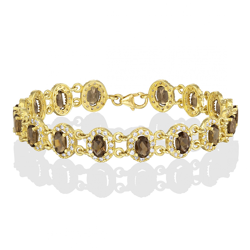 צמיד זהב 14K עשוי חוליות אבנים אובליות צבע לבחירת לקוח בשיבוץ אבני זירקון לבנות סביב.