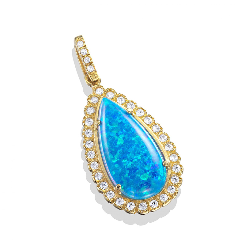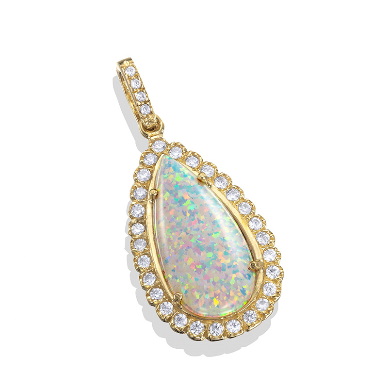 תליון זהב 14K משובץ אבן מרכזית בצורת מרקיזה בצבע לבחירת לקוח בשיבוץ אבני זירקון לבנות סביב גם התלי משובץ אבני זירקון לבנות.