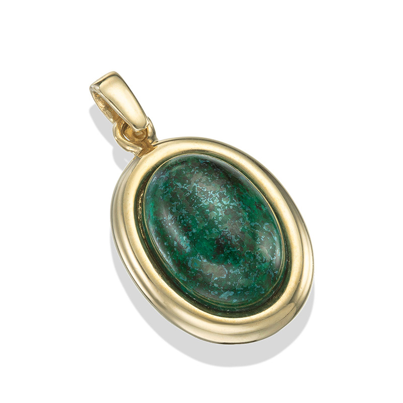 תליון זהב 14K בשיבוץ אבן מרכזית אובלית -אבן אילת-ניתן לבחור גם אבן מרכזית לבחירת לקוח.