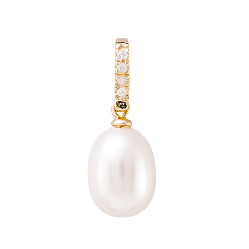 תליון מעוצב עשוי זהב צהוב 14K עם פנינה תלויה אמיתית התלי משובץ זירקונים לבנים.