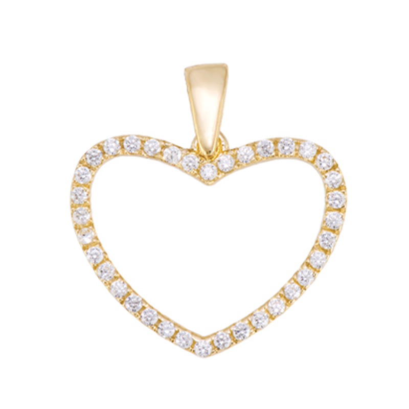 תליון זהב צהוב 14K בצורת לב משובץ זירקונים לבנים.