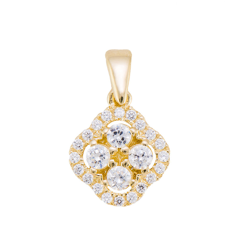 תליון זהב צהוב 14K משובץ זירקונים לבנים בצורת תלתן.