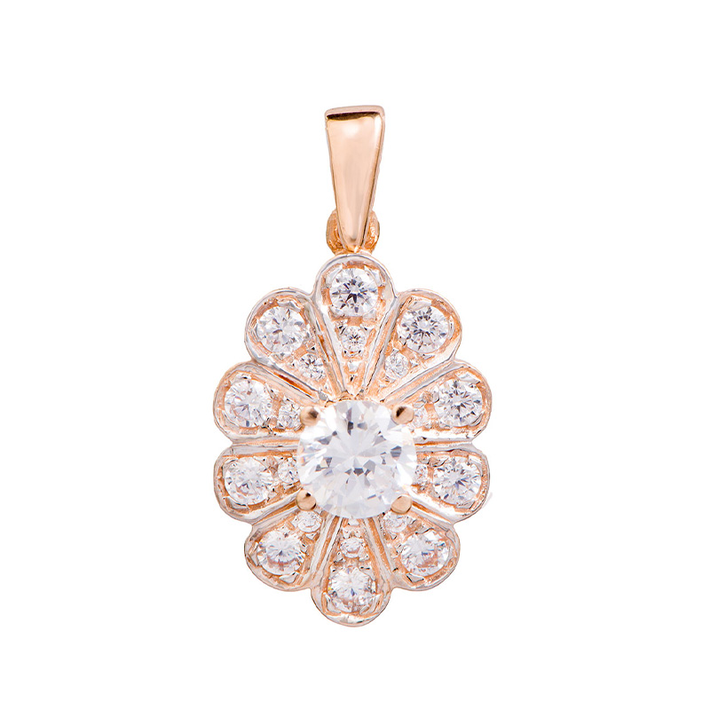 תלוין בעיצוב רוסי מסורתי עשוי זהב אדום 14K משובץ זירקונים לבנים בצורת טיפות וזירקון מרכזי.