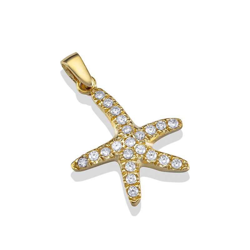 תליון זהב 14K בצורת כוכב ים משובץ אבני זירקון לבנות.