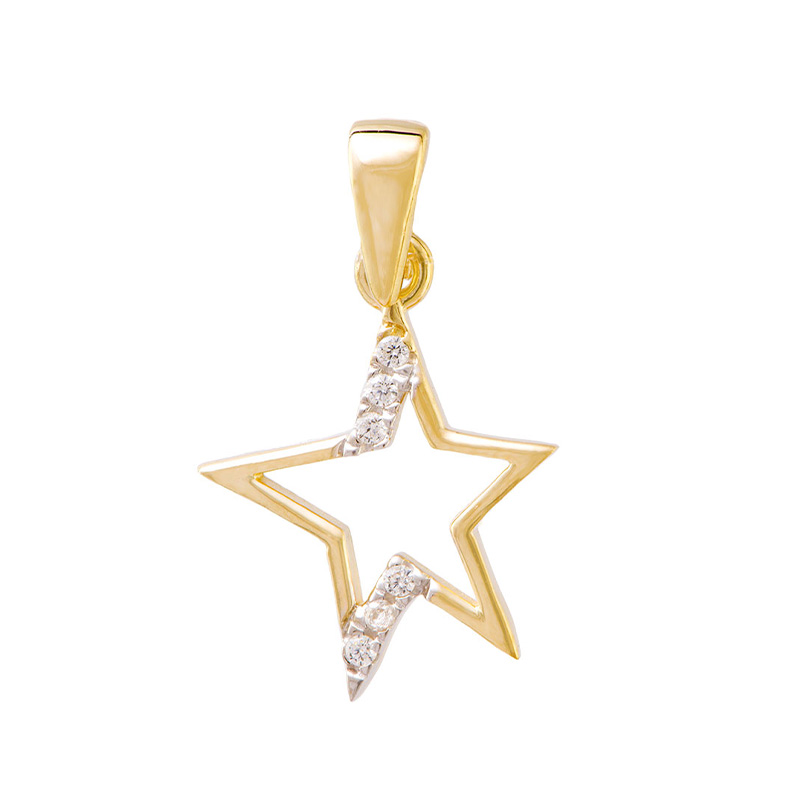 תליון כוכב מעוצב כצורה כוכב א-סימטרי משולב בשיבוץ זירקונים לבנים