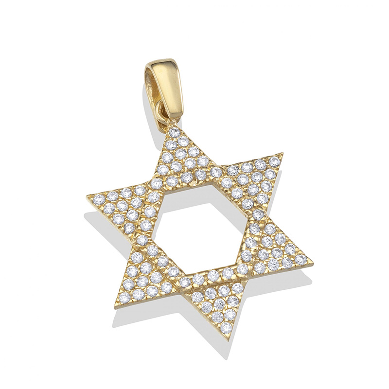 תליון זהב 14K בצורת מגן דוד משובץ אבני זירקון לבנות.