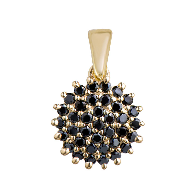 תליון זהב צהוב 14K משובצת באבני זירקון שחורים.