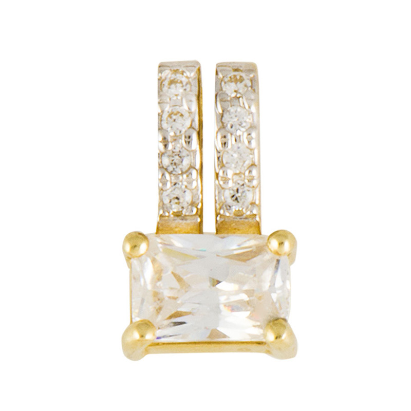 תליון זהב צהוב K14 משובץ שתי שורות זירקונים ואבן זירקון לבן מלבנית בשיבוץ שיניים.