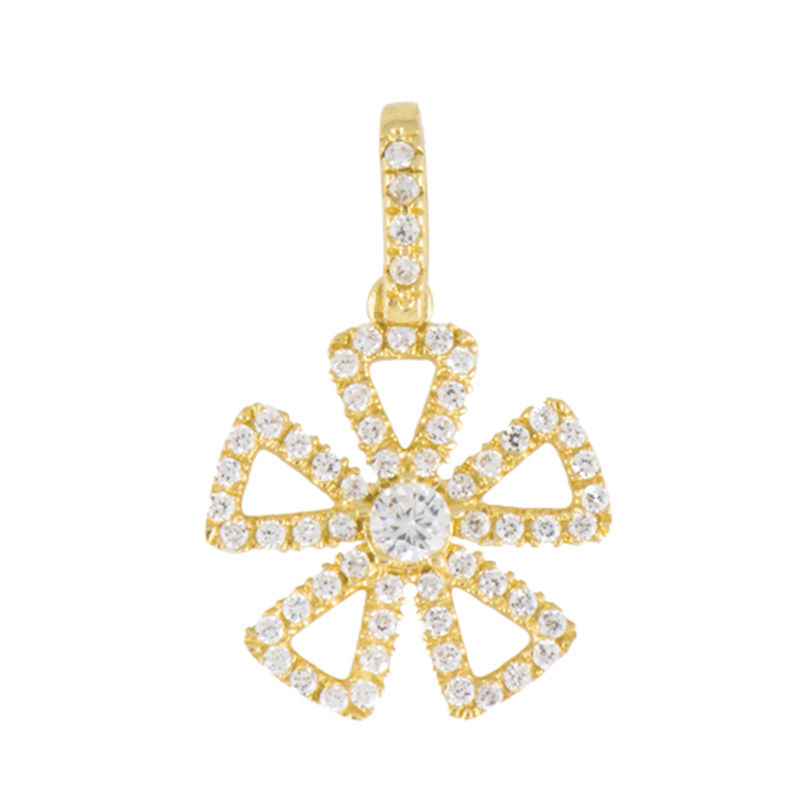 תליון פרח הוא תליון זהב צהוב K14, בשיבוץ זירקונים לבנים ונוצצים בכל אחד מהעלים שלו וגם על התלי.
