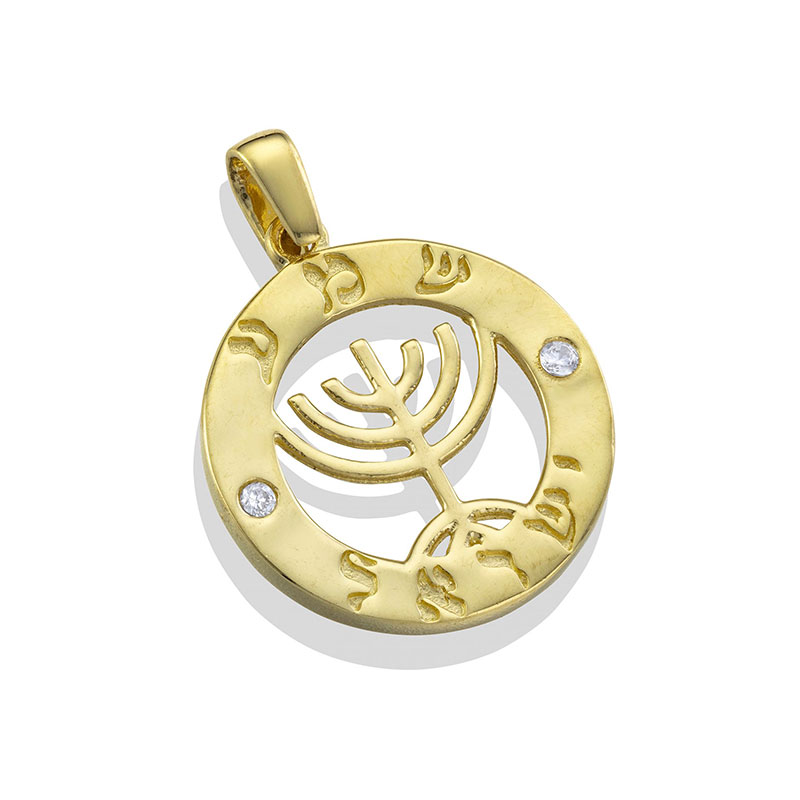 תליון שמע ישראל מנורה K14 עגול